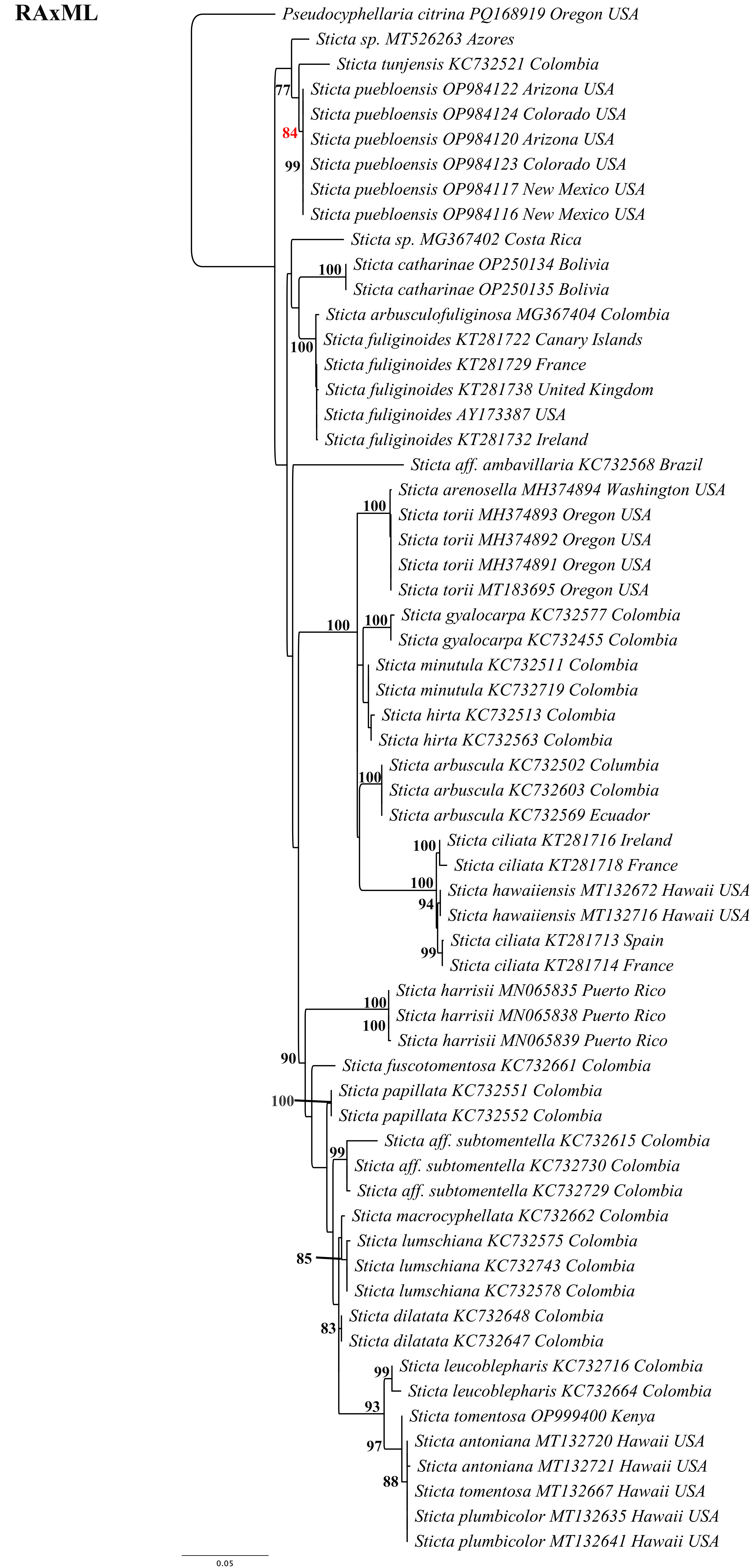 Galloway, D. J. & Thomas, M. A. 2004. Sticta. In: Nash III, T. H., Ryan, B. D., Diederich, P., Gries, C., Bungartz, F. (eds), Lichen Flora of the Greater Sonoran Desert Region. Vol. II, pp. 513–524. Lichens Unlimited, Arizona State University, Tempe.